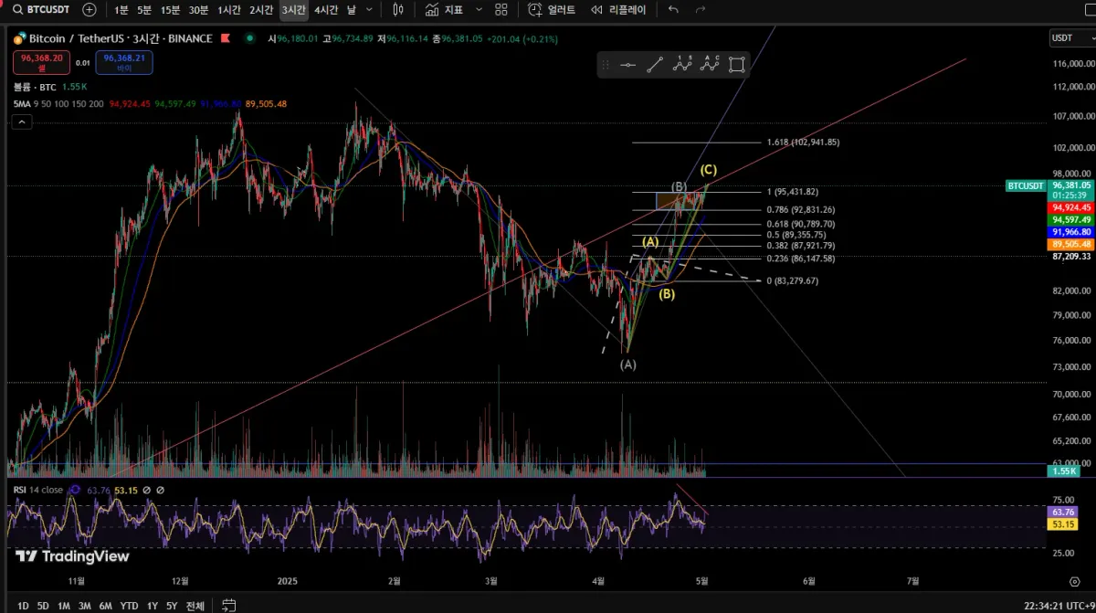 지금은 고점권에서 매수하기보단 상위 시간봉 구조 속에서 지지 구간이 확인된 이후에 접근하는 보수적인 전략이 더 적절합니다. 3시간봉뿐 아니라 1일봉 이상에서 파동 구조와 거래량 흐름을 꼭 함께 보시길 바랍니다!