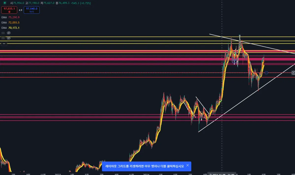 지지저항선은 작은 시간봉으로 했더니...엄청 많게 느껴집니다...