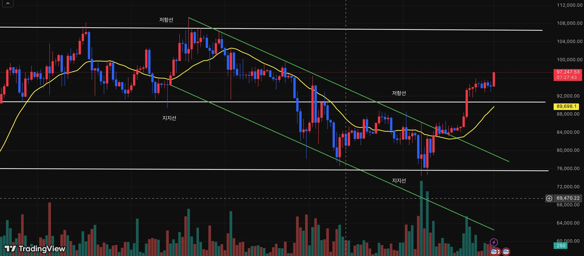 30일 챌린지[30일 챌린지 26기 1일차] 지지선, 저항선, 추세선 작도