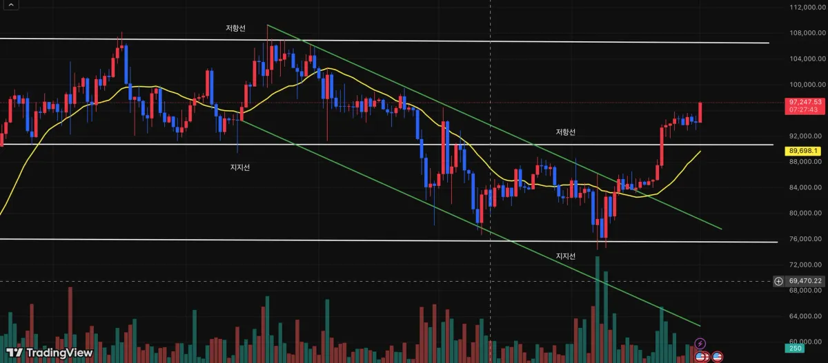 7일 챌린지[30일 챌린지 26기 1일차] 지지선, 저항선, 추세선 작도
