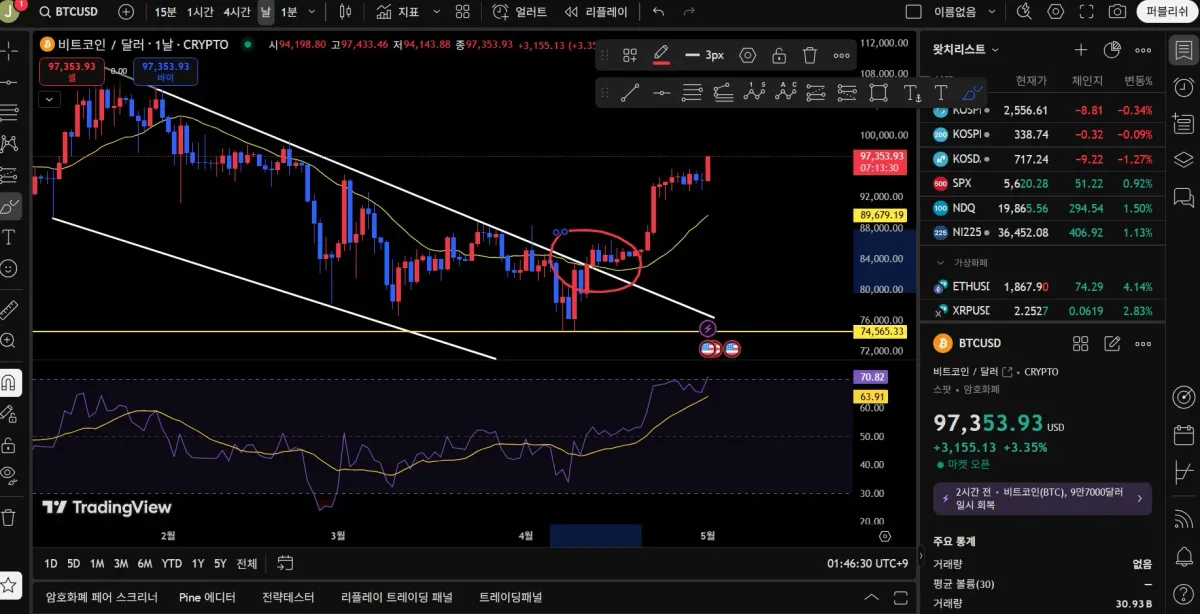 하락은 있었지만 지지선근처로 오고 지지선이 잘 받쳐준거 같습니다.
