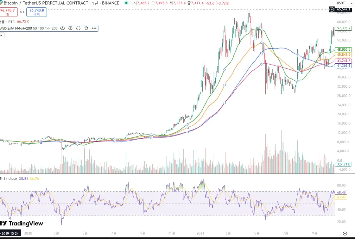 상대강도지수(rsi) 와 이동평균과의 관계에서 다이버젼스를 활용하여 다이버젼스가 발생하면 상승과 하락의 추세를 예측 할 수 있다