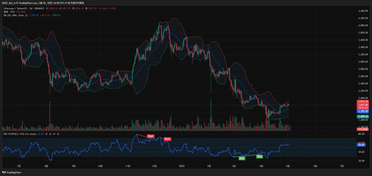 볼린저 밴드와 RSI 지표를 사용하고 있습니다.