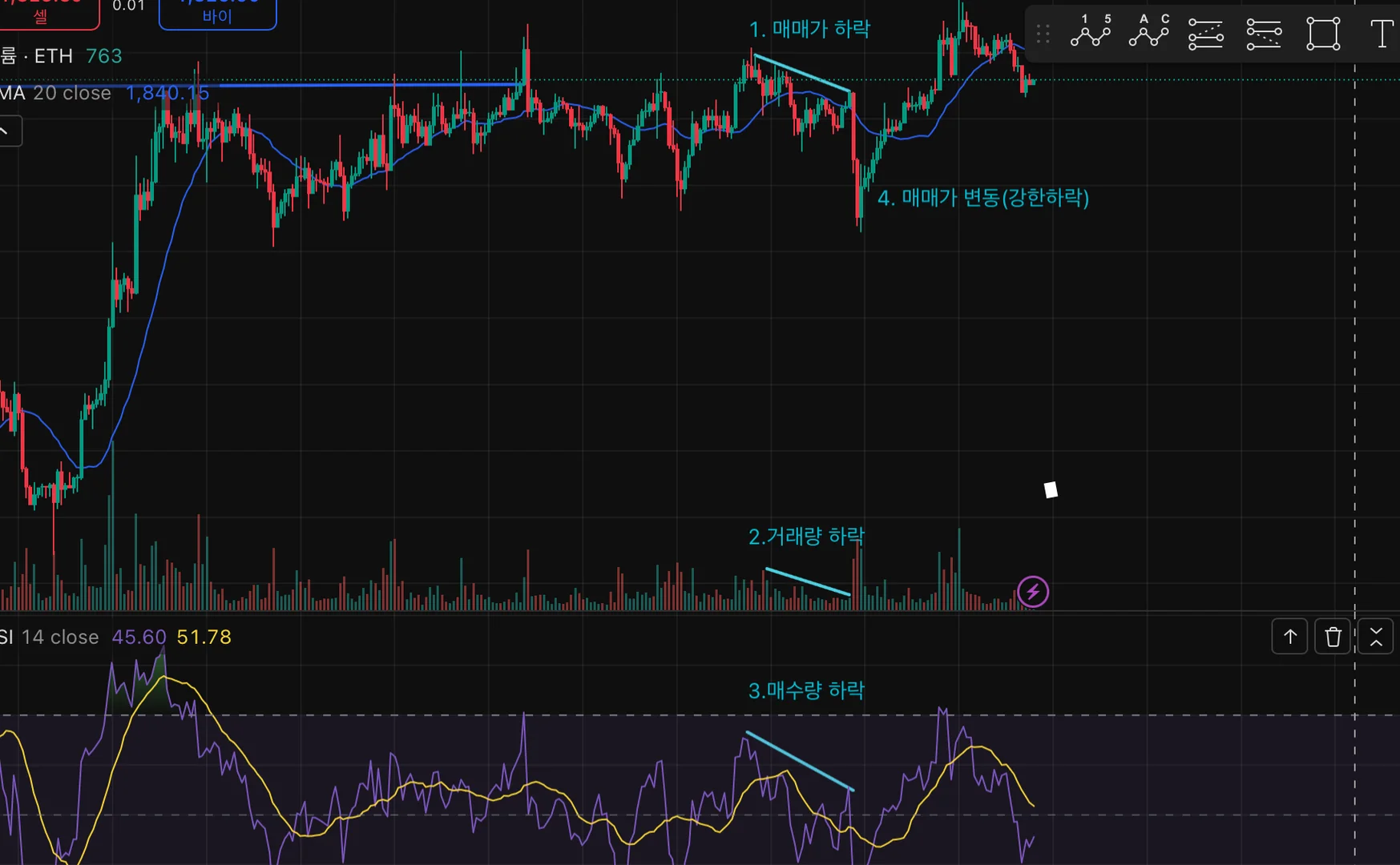 수업 후 RSI 지표 활용해서 분석한 자료 인증합니다! 이것저것 합쳐져 보이는것 같아서 아직 그래프 분석을 바로바로 적용해보기가 어렵네요..!