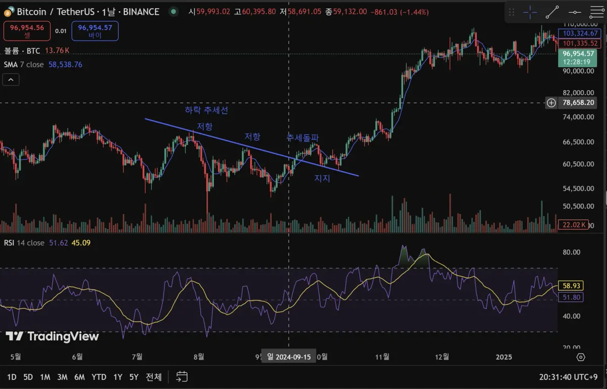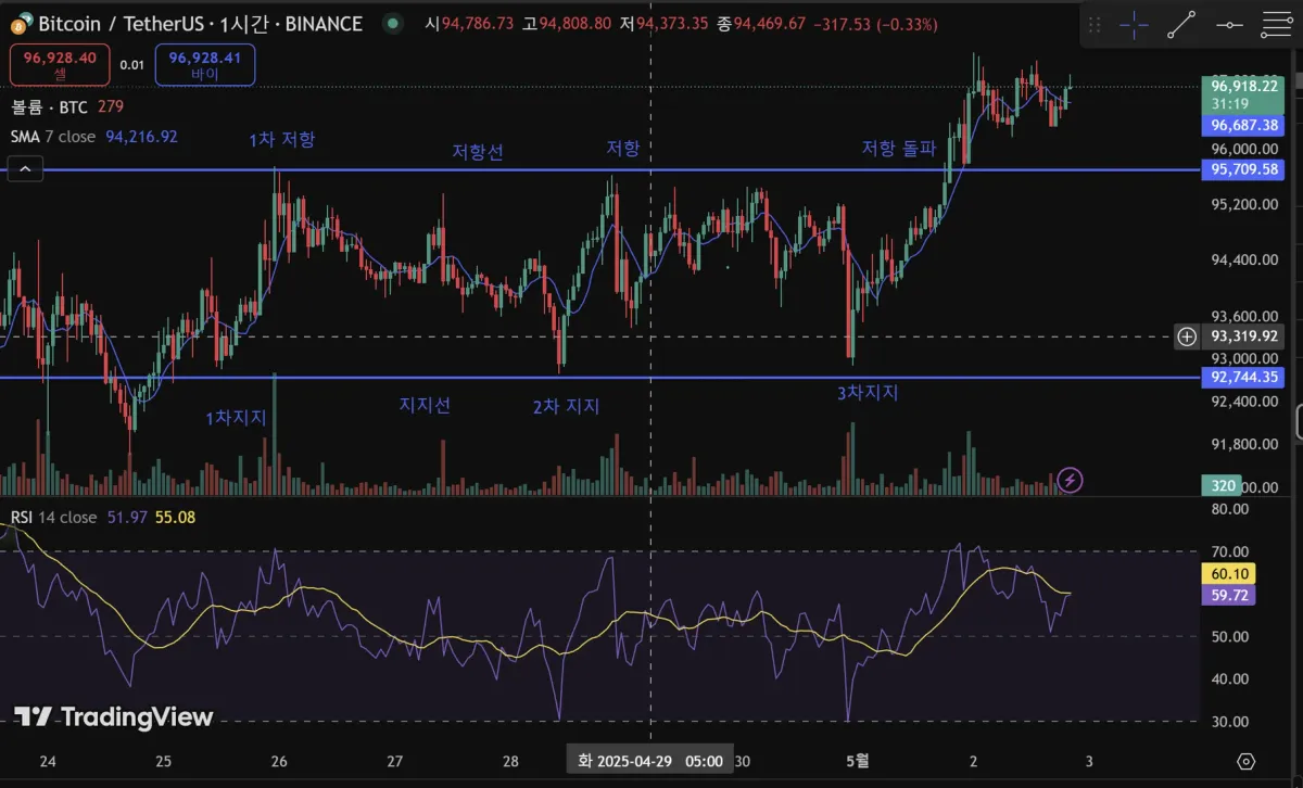 지지선, 저항선 및 추세선 강의 작도 실습입니다.