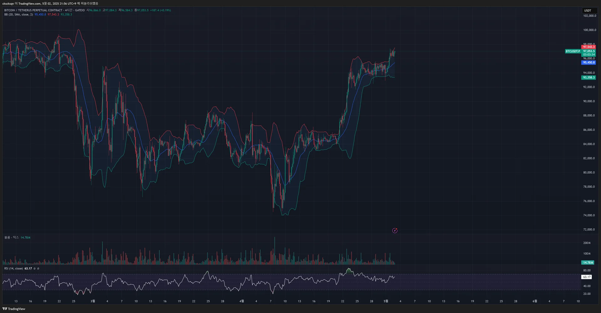 볼린저밴드, rsi, 볼륨만 추가했습니다