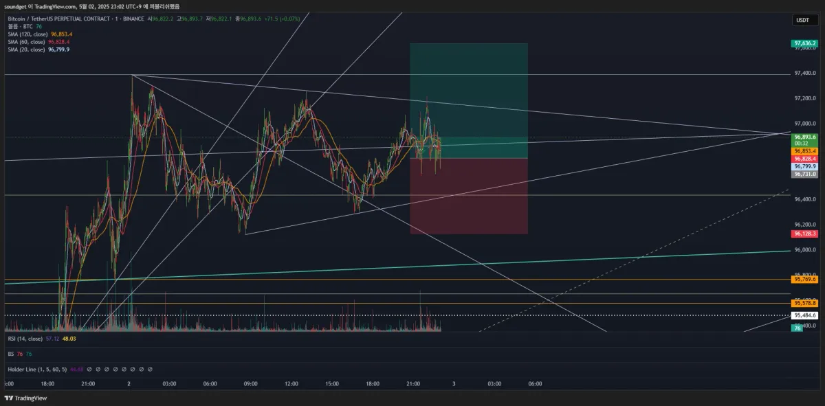 진입:96731.0/익절:97636.2/스탑:96128.3/손익비 1:1.5