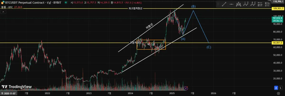 7월 중순쯤 25년1월20일 고점의 저항선 기준 뜷지 못하고 분산국면 단계로 넘어갈꺼라 예상 됩니다.