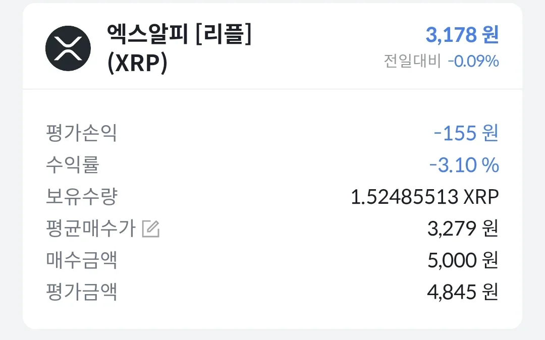 매수 연습할겸 완전 소액 으로 리플 매수 해봤습니다.