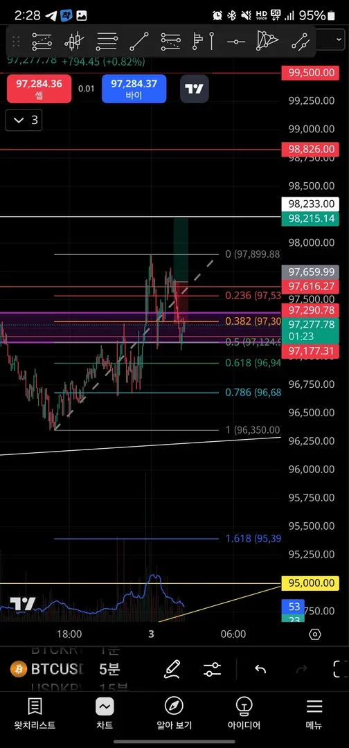 -5분봉 매매로 1시간>15분>5분으로 상승추세 확인