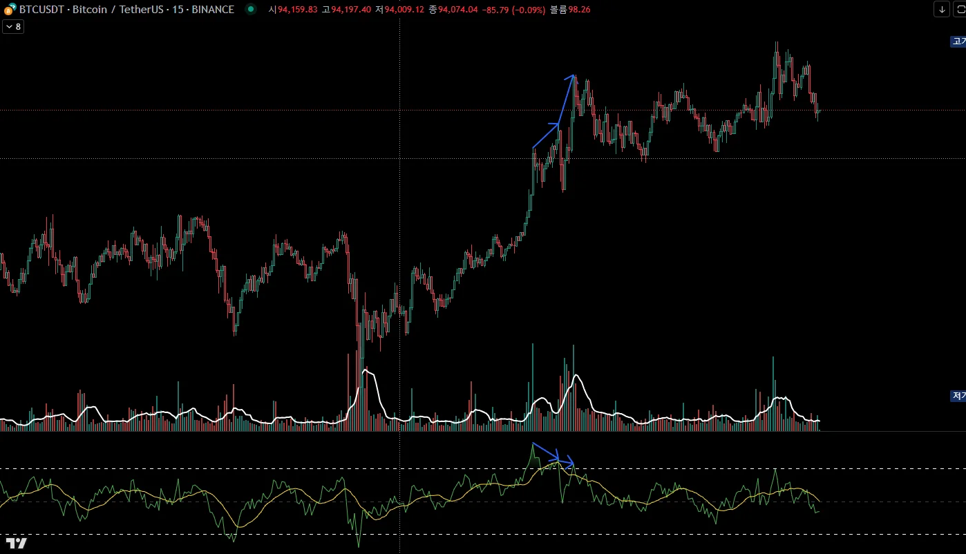 5월1일 15분봉 다이버젼스네요 2연속 다이버후 약 조정 나왔네요