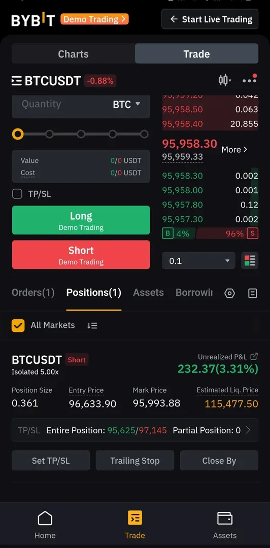 위 3가지 진입근거가 향후 하락 시그널로 판단되어 short 진입함