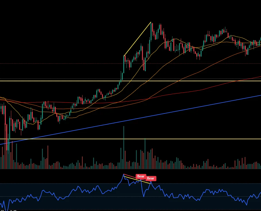 최근 상승세에서 하락다이버전스 확인하였습니다.