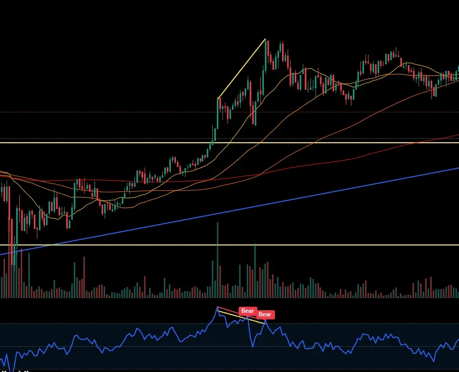 최근 상승세에서 하락다이버전스 확인하였습니다.