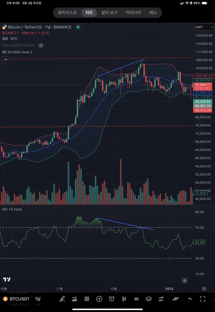 강의에 나온 하락 다이버전스를 찾아보았습니다. 연습이 필요하다는걸 계속 느끼게 되네요!,