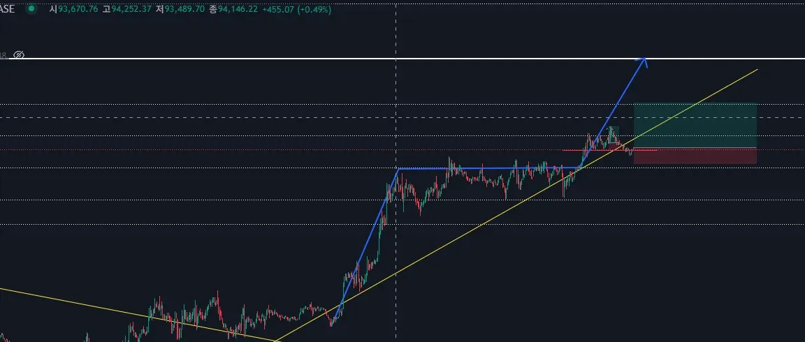 진입근거: 플래그 패턴으로 99.5k 까지는 올라갈거라 생각함