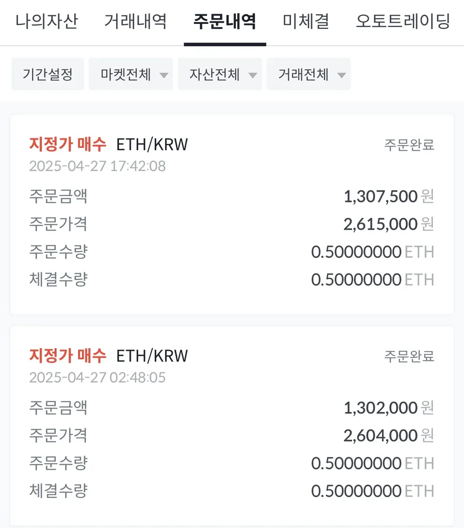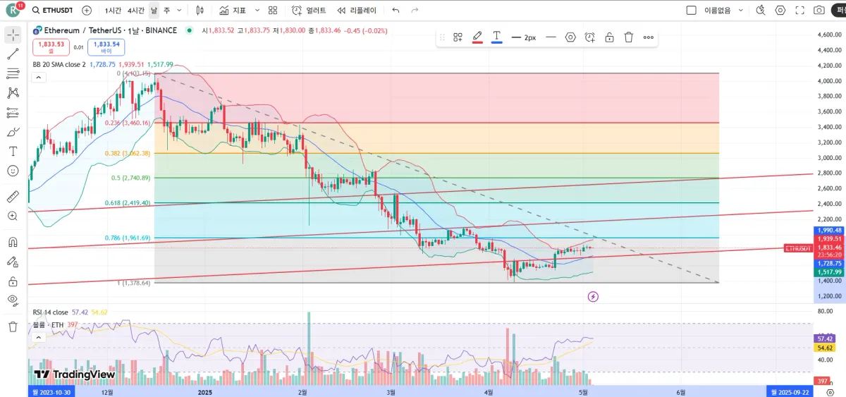 그동안 배운 기술적분석과 보조지표를 활용하면서 4월27일에 이더리움 현물 포지션을 잡아보았습니다.