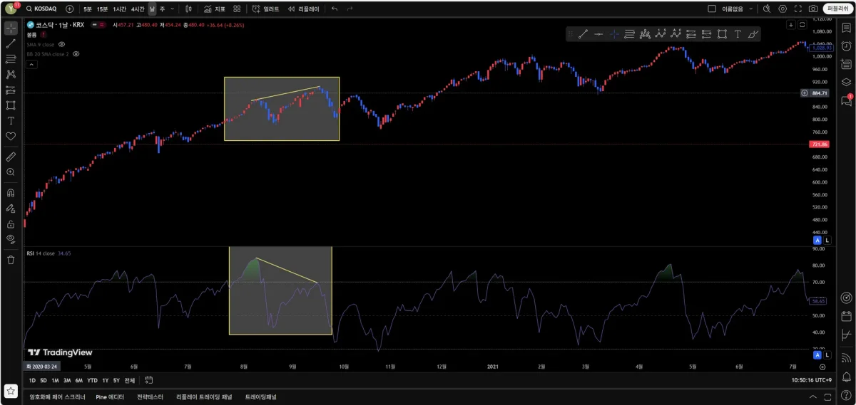 첫번째사진: 가격은 하락, 지표는 상승