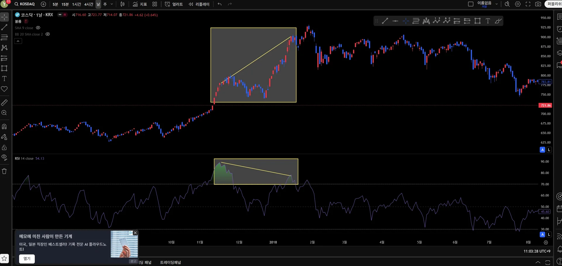 네번째 사진 : 가격은 비슷 동일, 지표는 상승