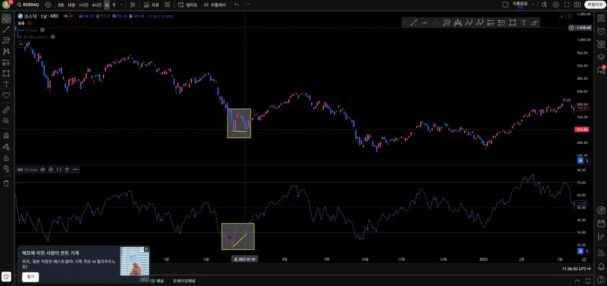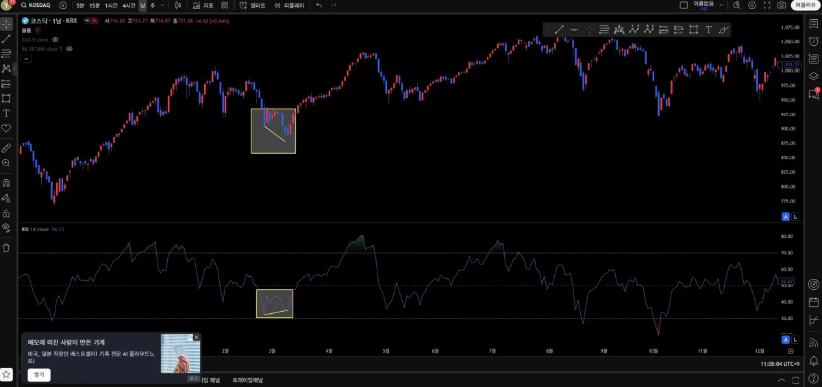 네번째 사진 : 가격은 비슷 동일, 지표는 상승