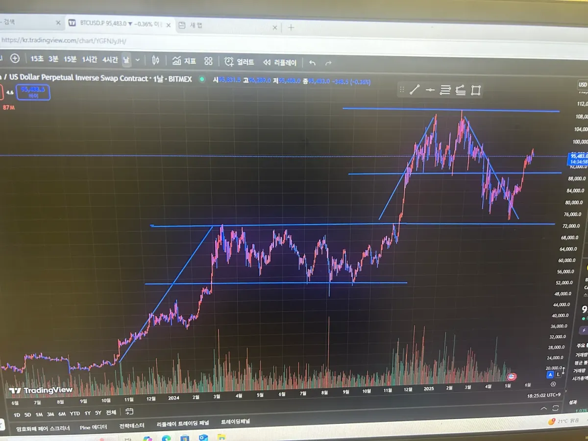 앞으로 저 지지선과 저항선 사이 박스구간에서 놀다가 저항선을 뚫고 현 저항선을 지지선으로 바꿔서 놀거같습니다