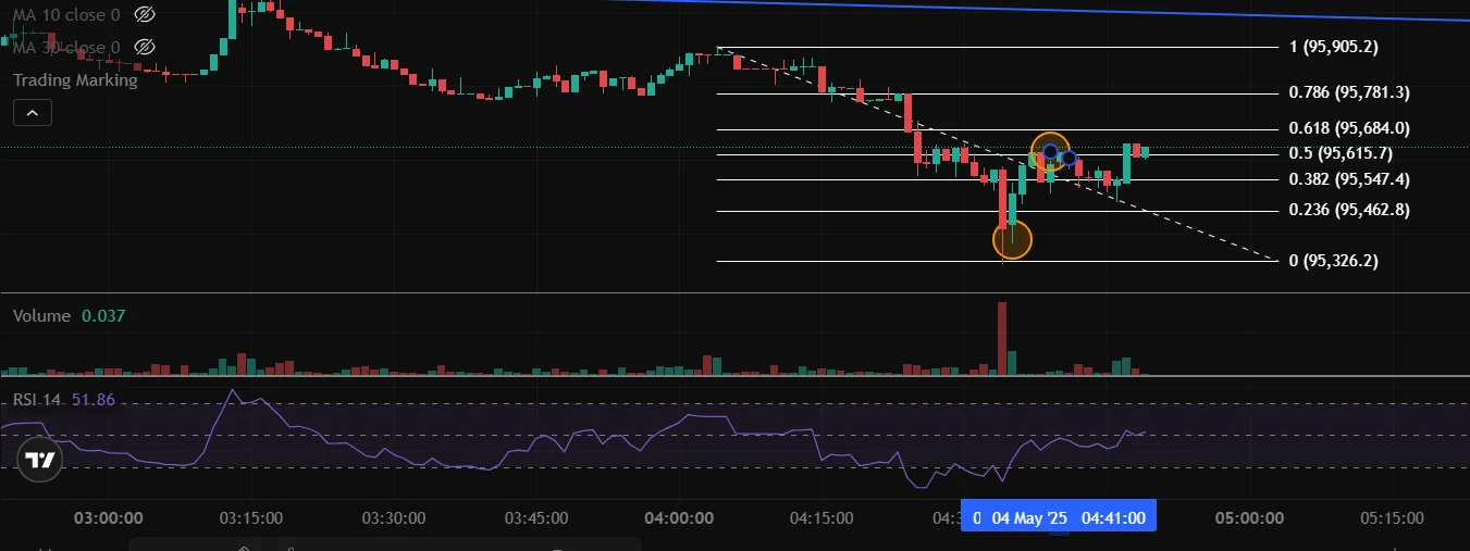 - 피보나치 되돌림 0.5에 해당하는 95615설정