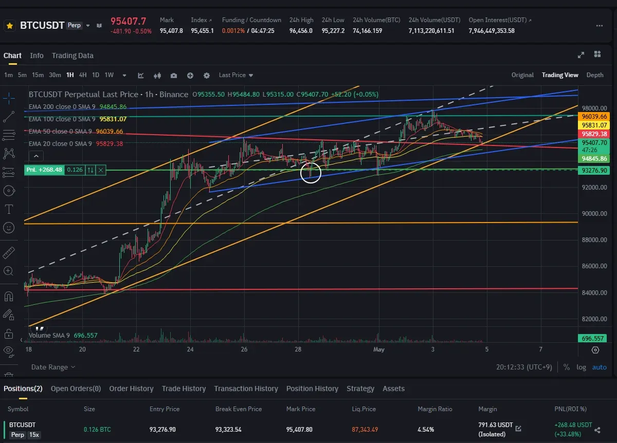 근거는 파란색 채널 하단 + 초록색 선 피보나치 0.5 구간 + 100이평 부근