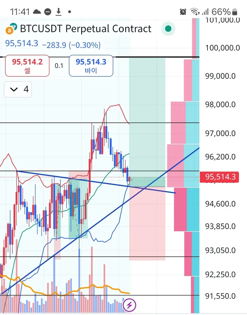 아직 결과가 나오지 않았지만 현재 300포 이득 중입니다. 익절로 마무리되면 좋겠습니다. 비트 등락이 요새 심하고 손절까지 거리가 길어 배율 줄여 리스크 조절했습니다.