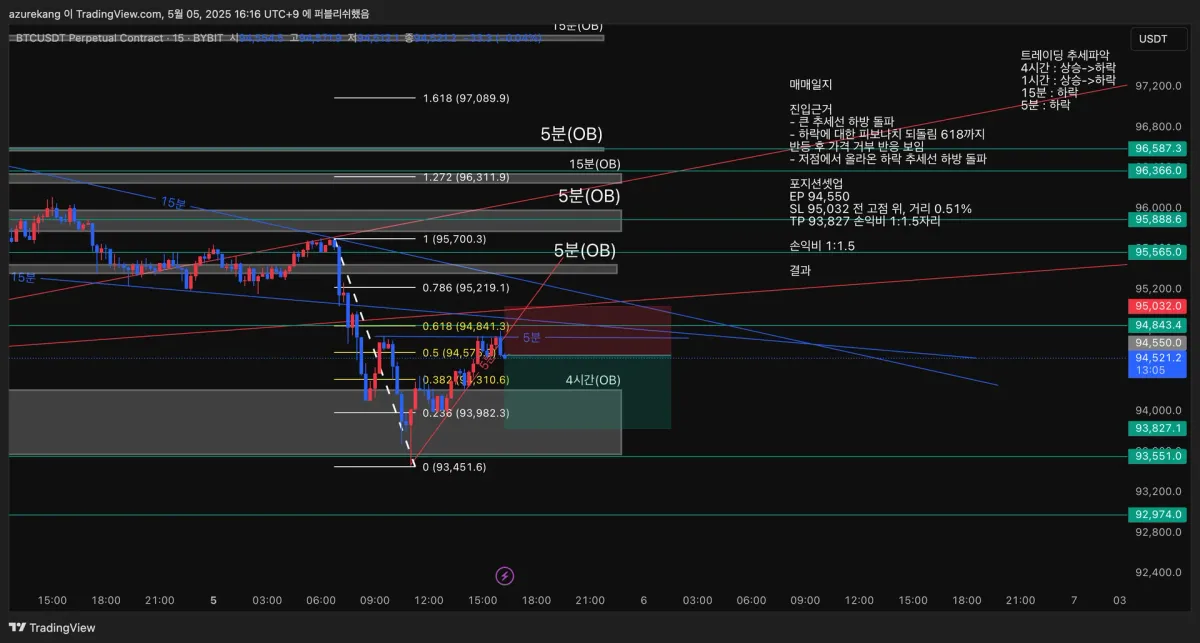 - 하락에 대한 피보나치 되돌림 618까지 반등 후 가격 거부 반응 보임