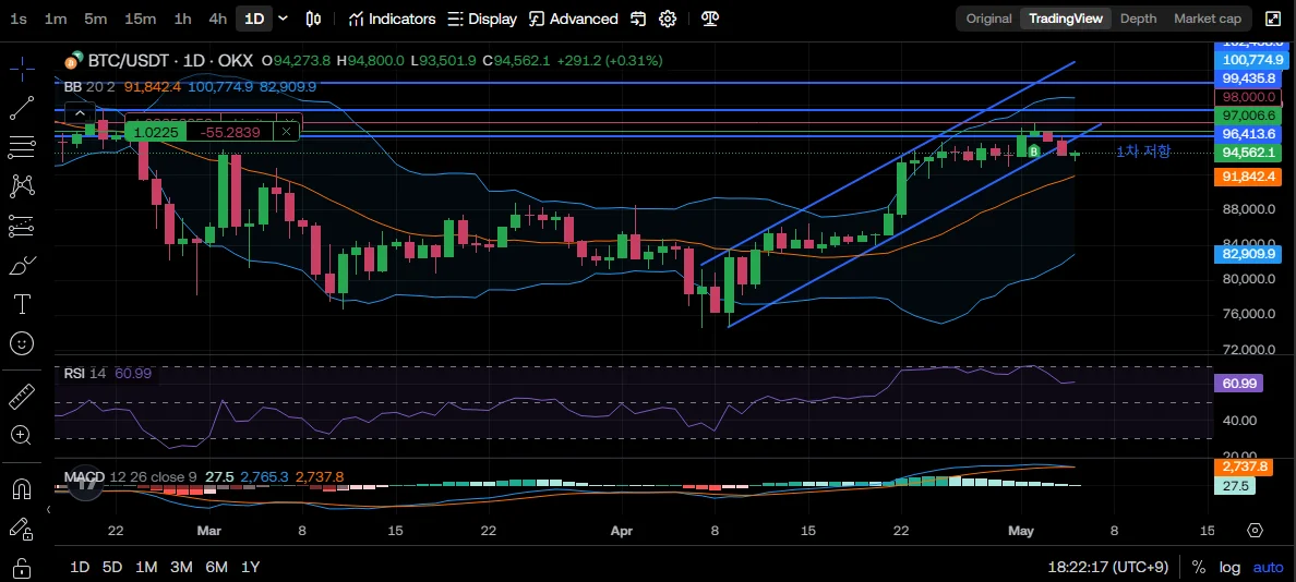 매수 근거 : 5/2일 1차 저항선이 지지로 바뀐걸로 인식