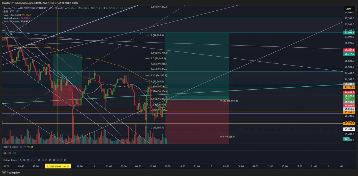 진입:95969.58/익절:97066.40/스탑:95151.84/손익비 1:1.5