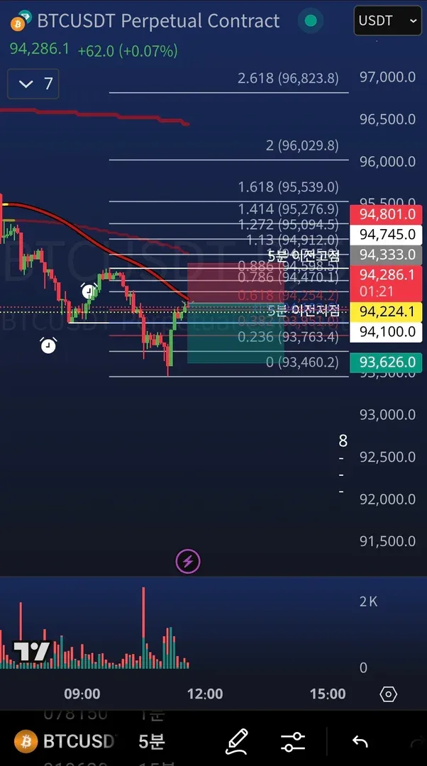 2) 피보나치 되돌림 0.618 부근