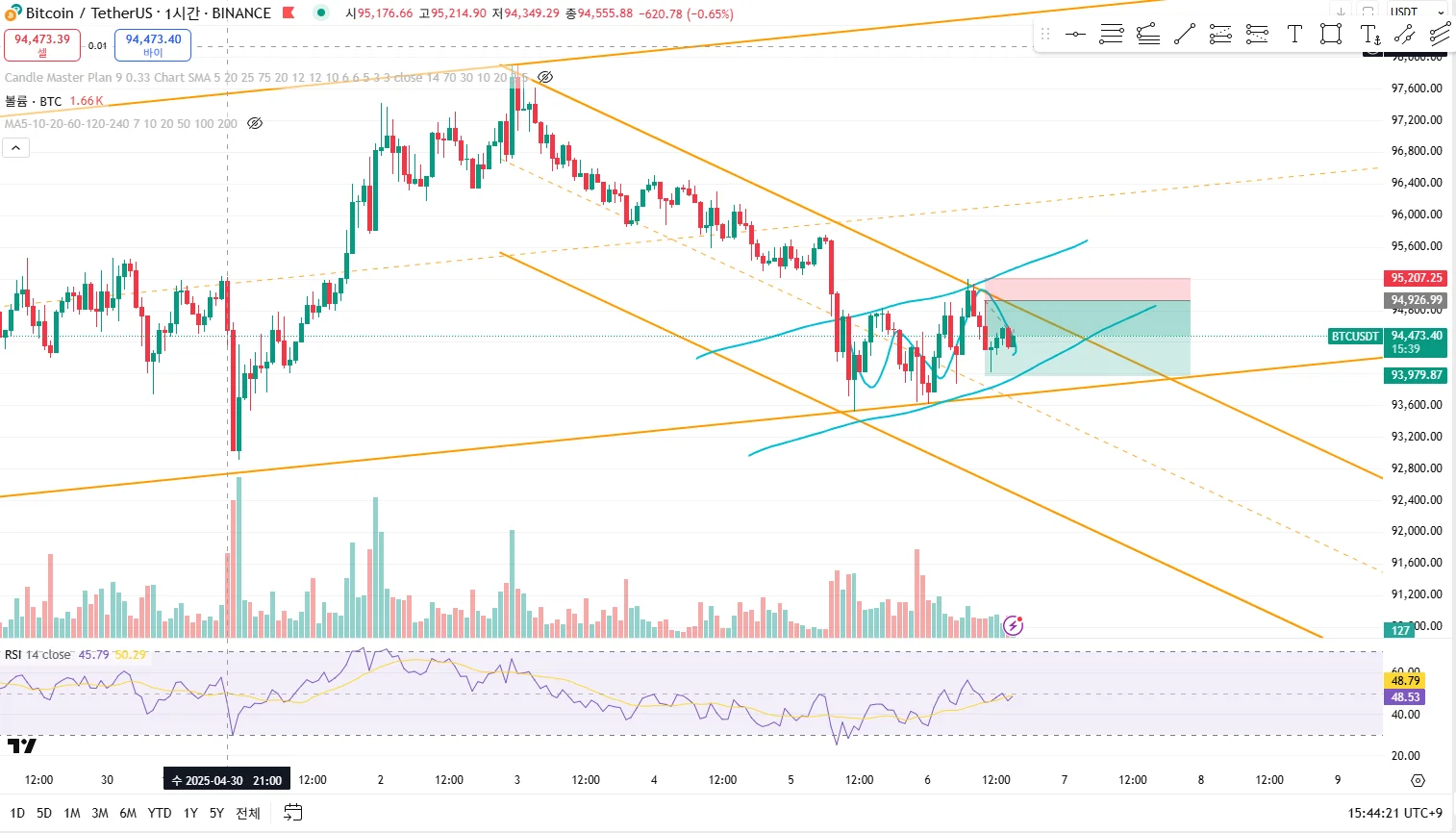 2)익절(TP): 94000 (베어플래그패턴 하단)