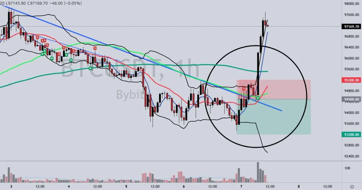 하락추세선에서 저항을 받고 다시 하락하는 움직임을 예상하고 숏포지션 진입했는데