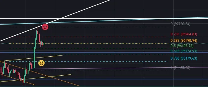 현재 0.382 구간에서 숏 익절하고 0.618 까지 자리가 온다면 다시 롱 받아볼 생각입니다.