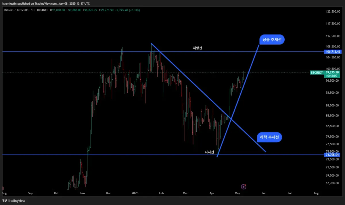일단 저항선, 지지선, 상승 추세선, 하락 추세선 작도해봤습니다.