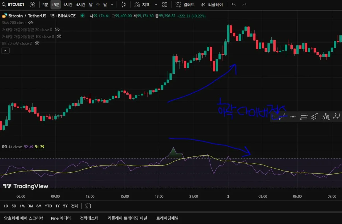제가 못 찾는건지 하락다이버전스는 보이는데