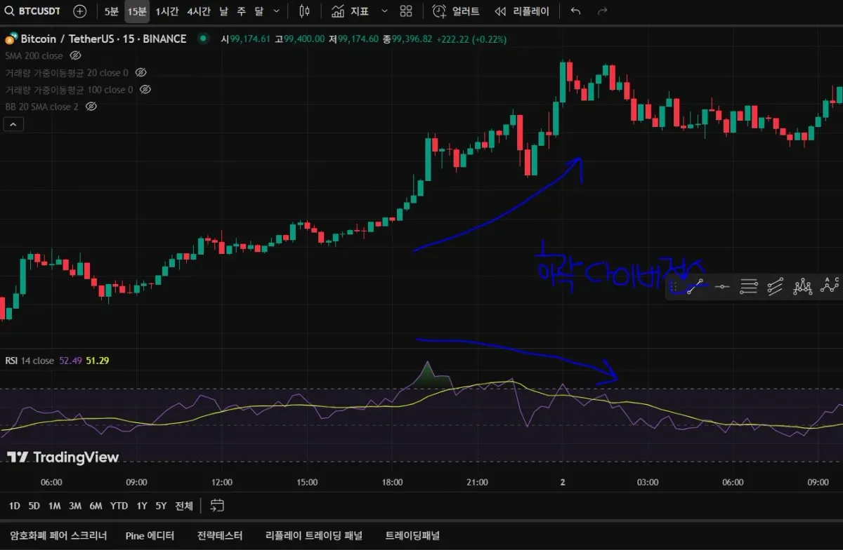 제가 못 찾는건지 하락다이버전스는 보이는데