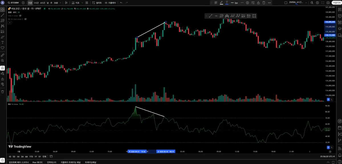 5, 6강 수강 완료 후, 차트에서 다이버전스를 찾아보았습니다.