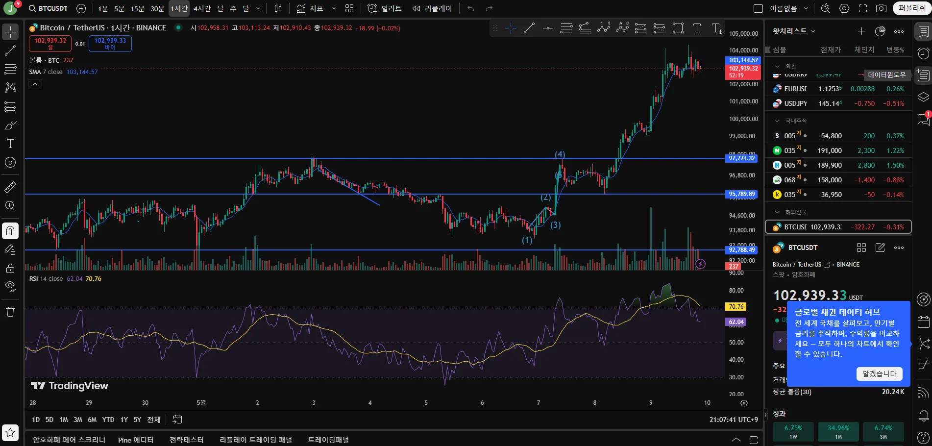 비트코인 차트에 RSI 지표를 추가했습니다.