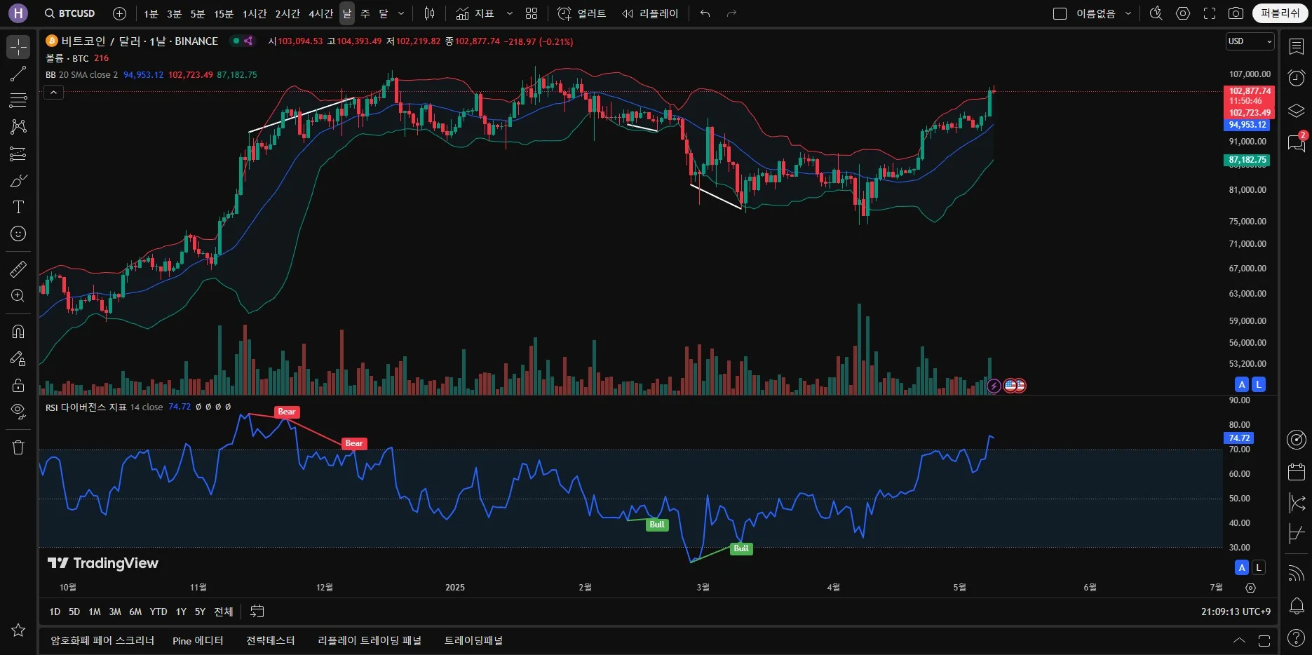 <30일챌린지 2기 11일차 미션> RSI 다이버전스, 볼린저밴드 이해하기