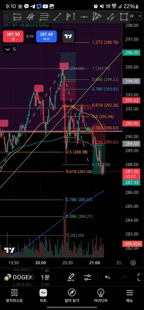 2) 단순 눌림인줄 알았으나 0.236뚫리는것보고 추세 바뀌었다 판단하고 진입