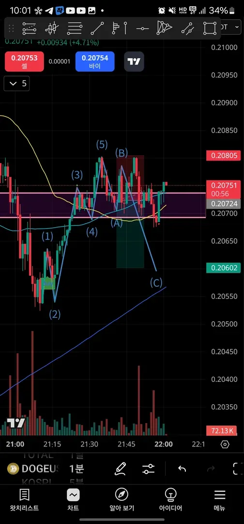 엘리어트 파동이론의 충격파동이 너무 예쁘게 그려져서 조정파동을 생각하고 진입하였으나 abc는 오지않고 박스권 형성되어 진입근거가 무너졌다 생각하고 손절선 터치는 없었지만 근거의 빈약함 대가를 시장에 반납했습니다.