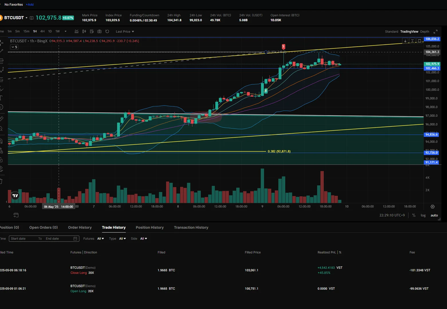 - 98000 / 5월2일 3일 더블어텀 기준 지지선을 스탑로스 잡고 진입