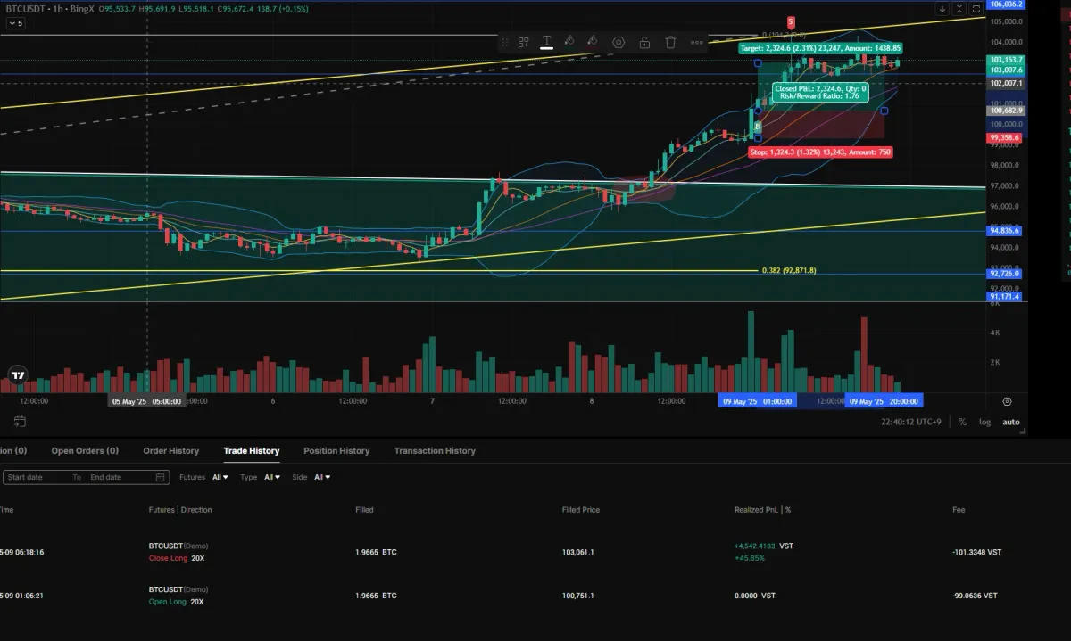 4. 하여 롱진입후 짧게나마 추세선 끝 103000쯤 익절 스탑잡아놓았으며