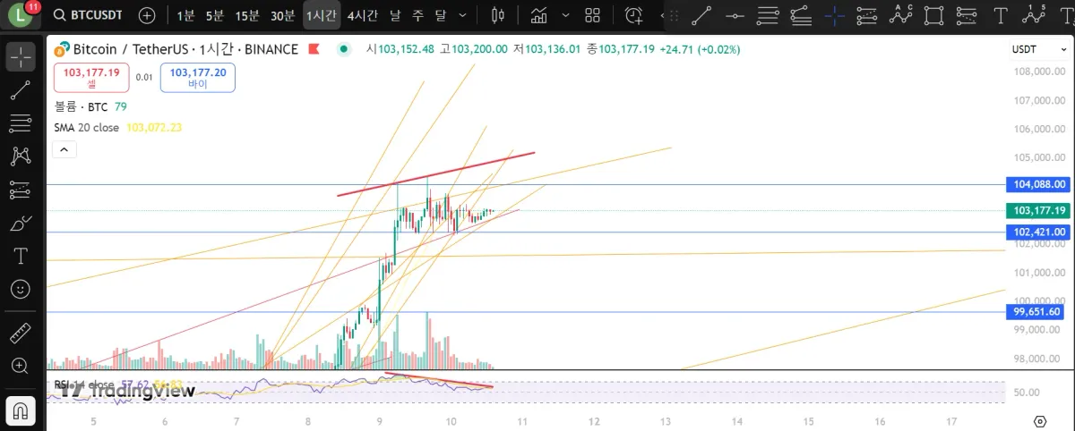 1시간봉 RSI 하락다이버전스 확인했습니다.