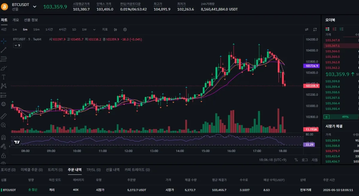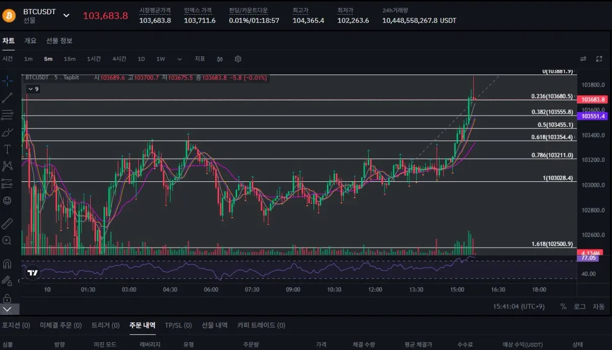 2. 5분봉 강한 상승 후 피보나치되돌림 0.618 숏포지션 진입