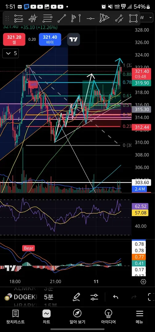 2) 확장 피보나치 저.고.저 찍고 1.0까지 상승할거라는 기대