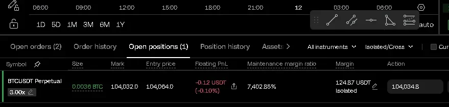 모의 투자 홈에서 비트코인 롱 포지션 홀딩 중 입니다