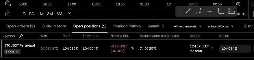 모의 투자 홈에서 비트코인 롱 포지션 홀딩 중 입니다
